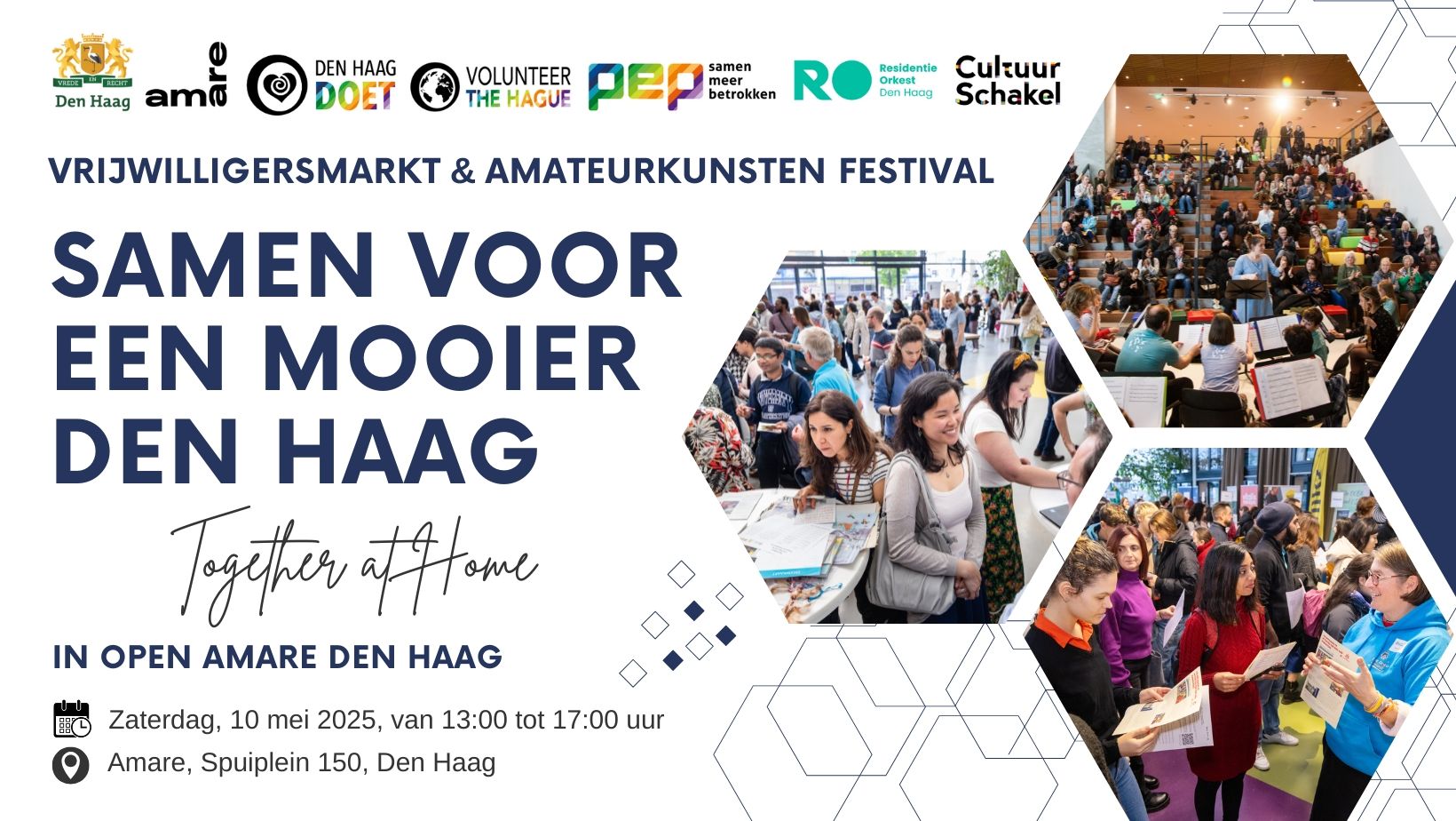 Ben jij klaar voor een dag vol inspiratie, nieuwe connecties en de kans om écht een verschil te maken in onze stad? Dit is jouw moment! Op zaterdag 10 mei 2025 van 13:00 tot 17:00 uur komt de meest spetterende Vrijwilligersmarkt & Amateurkunsten Festival van dit jaar naar Amare, Spuiplein 150, Den Haag. Een evenement dat je niet wilt missen!